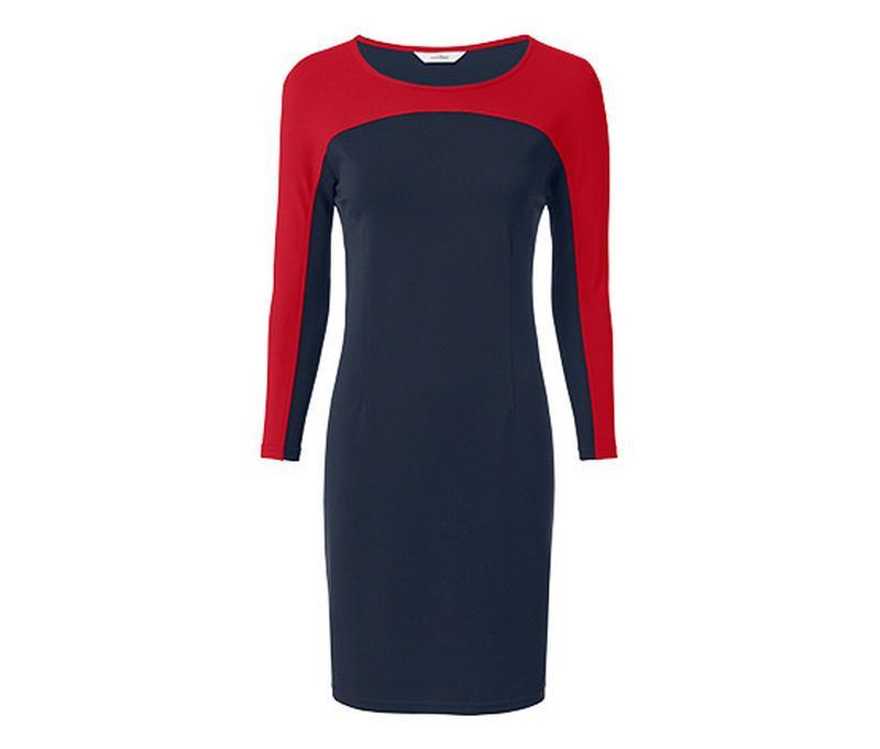 Платье из джерси. Женственный и современный силуэт. С этим платьем из трикотажа вы модно настроены. Вырез демонстрирует преимущество благодаря контрастному цвету и добавляет платью интересный оттенок. То же самое касается рукавов 3⁄4, а также разделовых швов на передней части женского платья, которые усиливают женский силуэт владелицы. Для того чтобы платье хорошо сидело, в тряпину вплетено волокно эластана. А качество обеспечивает мягкость и эластичность одежды. Подходит: стандартный крой. Цвет: темно синий с красными вставками. Материал: 64% вискоза (от Лезинга), 31% полиамид (ПА), 5% эластан размер наш: 42-44 (36/38 евро) размер наш: 42-44 (36/38 евро) ПОГ: 50 см ПОТ: 46 см СТ: 51 см Длина: 94 см Длина рукава: 53 см