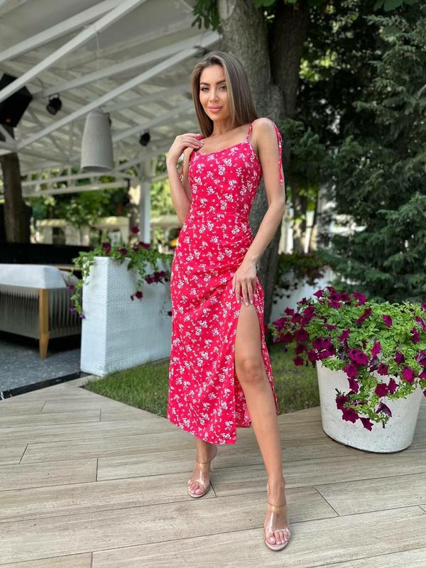 🎨красное, синее! шикарное женское платье сарафан в цветы миди женское красное красное Кра...