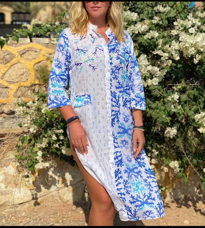 Акция!!️‼️‼️ Очень классное легкое платье💙💙💙 Производитель Индия. 100% бавовна🌸 Размеры 48-54 На объем груди 96-108см.