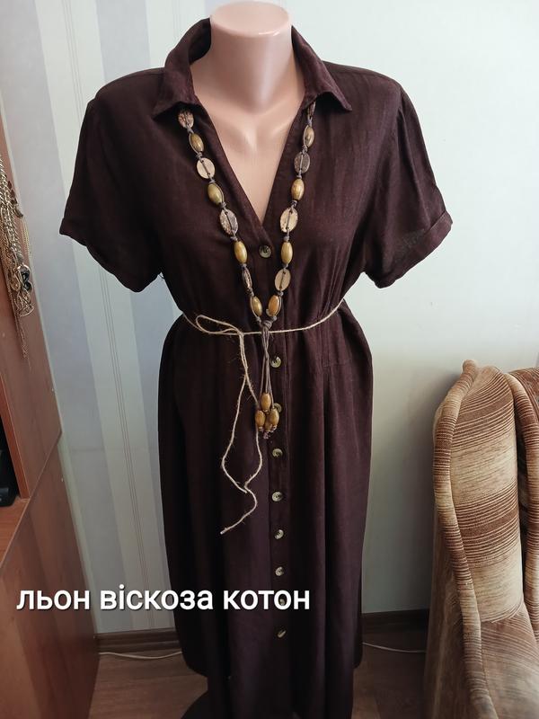 Довга льняна сукня міді на гудзиках доинное платье миди на пуговицах м л хл