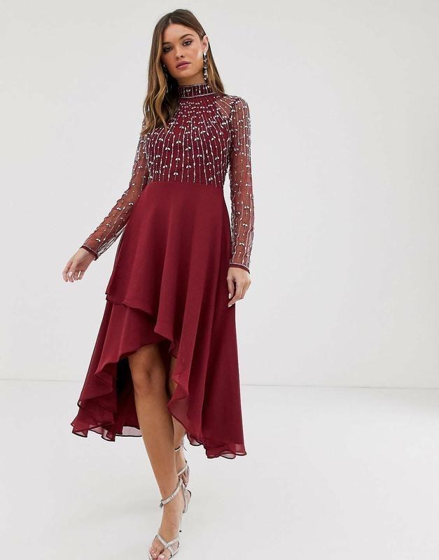 Платье миди с отделкой на лифе и юбкой с запахом ASOS DESIGN Uk 6,12 Uk 6 Пог 41-43 См Пот 32-34 см Длина от плеча 90/120 см