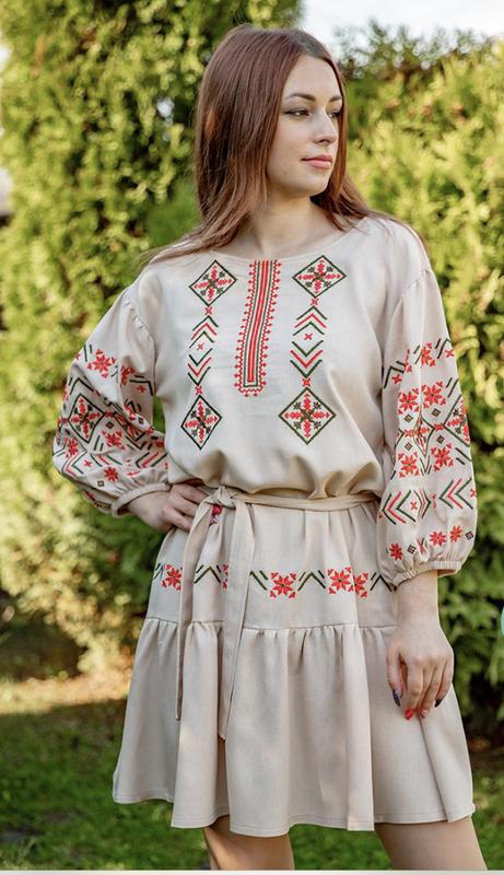 Дуже стильна сучасна вишиванка сукня Виконана з якісної тканини 65% льон + 30% поліестер + 5% еластан Можна носити в двох варіантах, з паском і без. Розміри в наявності S, M, L За детальними замірами звертайтесь в приватні повідомлення