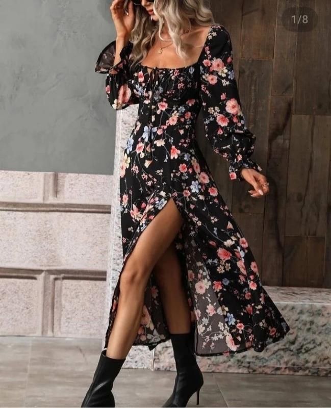 На спине потайная молния. Плечики на резинке, можно также допустить. На груди затяжка будет удобно, можно регулировать на любой объем груди. Платье выполнено из легкой ткани. Размер S/M.