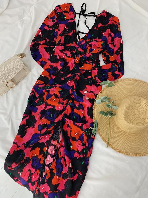 Медное платье Размер 12, М Спереди разрез, красивая сборка на бедрах Вискоза Цена 450