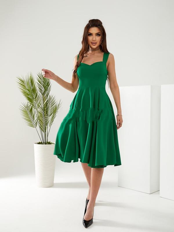 Сукня міді на широких брительках, ткинина костюмна ( трошки тягнеться). Є кишені. застибається на блискавку на спині.
