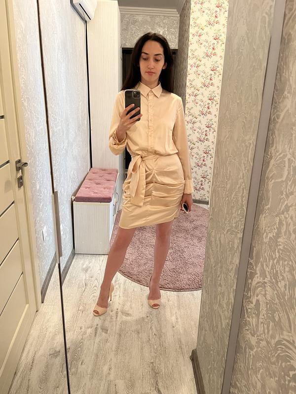Елегантна сукня зверху на ґудзиках, низ зібраний. Ідеально підкреслює фігуру. Має непомітну пляму від примірки.