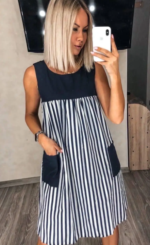 Платье женское шелковый софт в полоску Накладные карманы Ткань: шелковый софт Размер: 42-46, 48-52 Цвета: черный, синий
