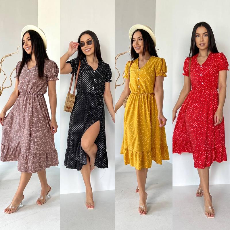 Платье длиной миди, с небольшим разрезом по ножке 🌷 талия и рукава на резиночке 😍 ▪️Код: 143 ▪️Цвет: черный, красный, голубой, желтый, мокко 📌 Размеры: 42-44, 46-48, 50-52 📌 Тканина: софт 💰 Цена: 650грн