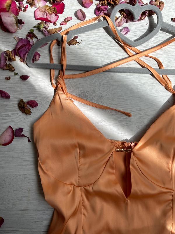 С позади разрез и впереди золотая цепочка 🌸Размер: S (8) 🌸Тканина: polyester 🌸Состояние: новый