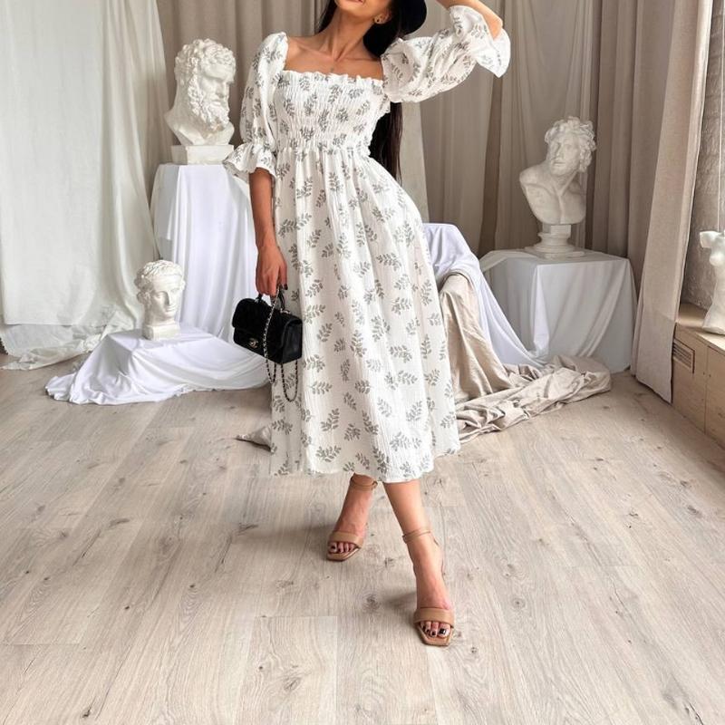 #Плаття Артикул: 590-145 Колір: молочний (принт як на фото) Розмір: універсальний 42-46 Матеріал: муслін (100% бавовна) Фото Реал