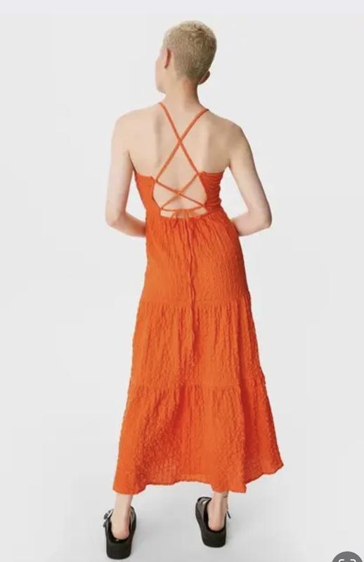Класнючий яскравий мусліновий помаранчевий сарафан😍 Підійде на розмір С Хс ширина від підмишки до підмишки 34см (регулюється завʼязками) ПОТ28(резинка) довжина виробу 120см