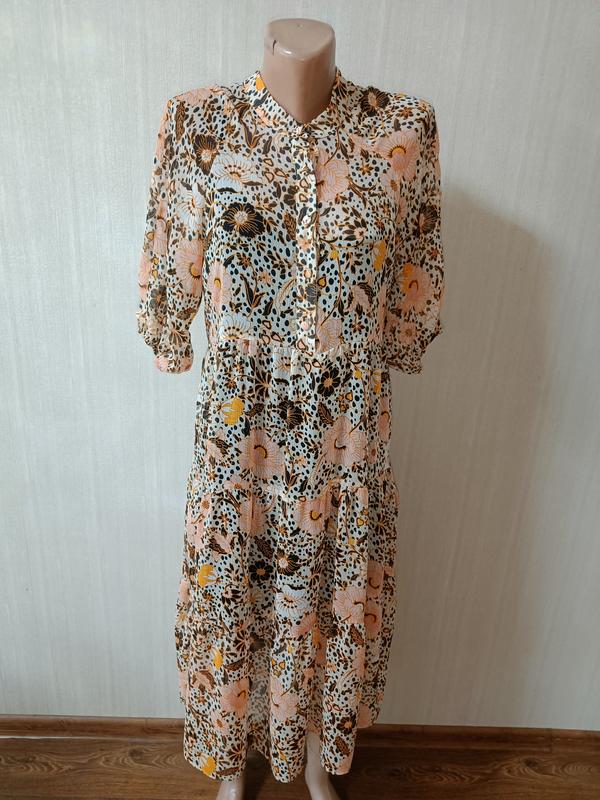Женское платье в цветочный принт, шифоновое платье расклешенного кроя размер L от бренда new look длина 109 см ог 44 см рукав от горловины 43 см в идеальном состоянии