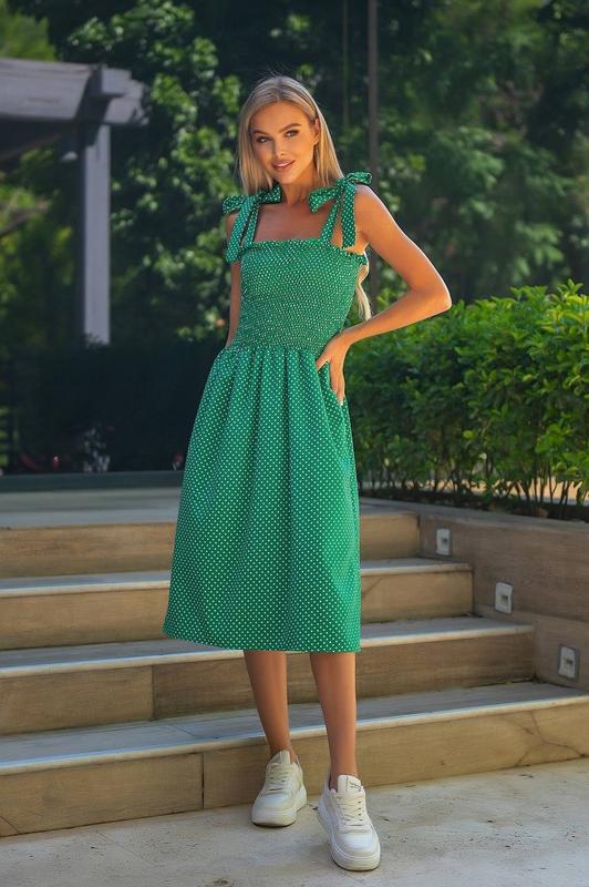 Сукня №615 розмір 42-46 тканина софт кольору-зелений, джинс Легкий літній сарафан на шпильках з кишенями в горошок. Сукня №0311 Ціна 680 розмір 48-52 тканина софт кольору-зелений, ждинс Легкий літній сарафан на шпильках з кишенями в горошок.