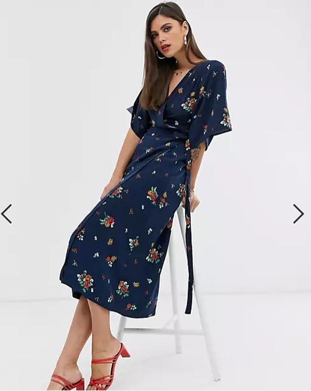Очень красивое женственное платье на запах с летящим силуэтом и широкими рукавами в стиле кимоно от популярного британского бренда LIQUORISH с сайта ASOS. Платье имеет V-образное декольте. Запах в талии, который фиксируется поясом, что очень удобно - может сесть на разные параметры. Длина миди. Глубокий темно-синий цвет и мелкий цветочный принт. Состояние: Новое ( без бумажной бирки - есть только хлястик от бирки) Размер по бирке UK16, что соответствует L, но идет скорее на М, можно S/M и M/L. Состав: полиэстер Страна производитель: Марокко Страна регистрации бренда: Великобритания Замеры: Длина 132см, ПОГ 48-49 (можно +- 2см за счёт запаха), ПОТ 38-39см ( можно и меньше - меряли на ПОТ 36см, тоже хорошо смотрится)