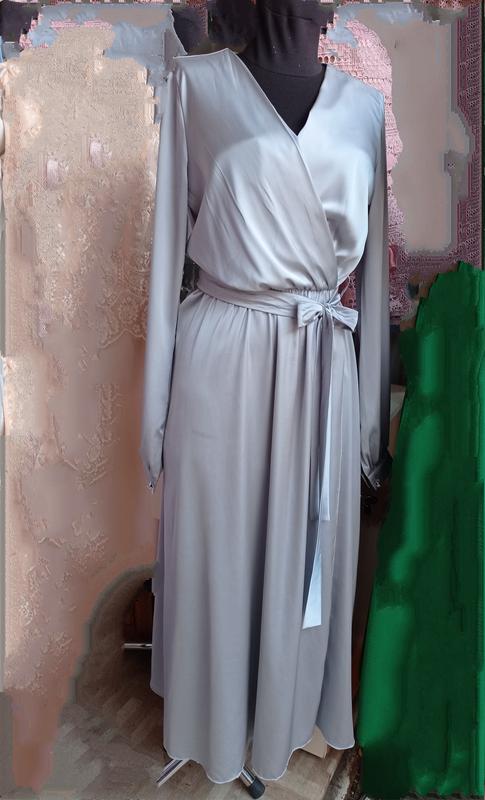 Плаття атласне, імітація запаху. Рукав застибається на гудзики.