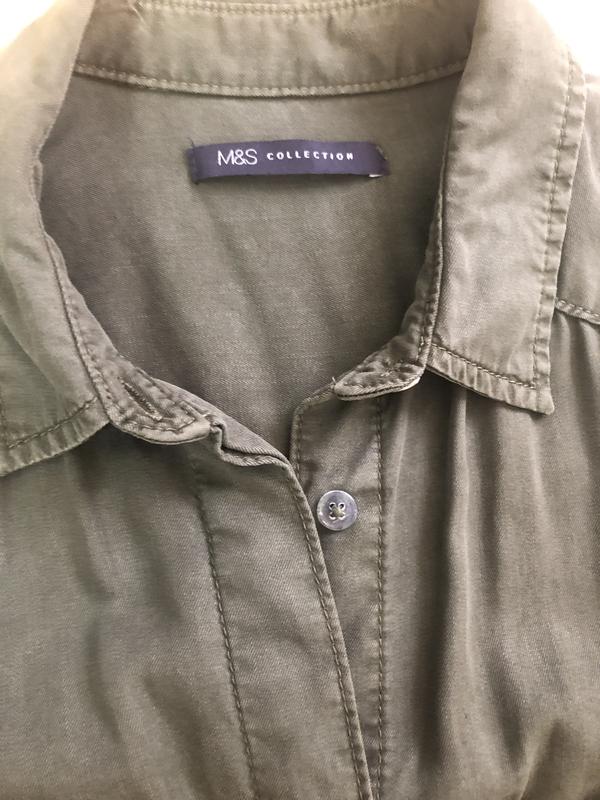 Платье цвета хаки, с пояском. В боковых швах карманы. Была одета один раз.