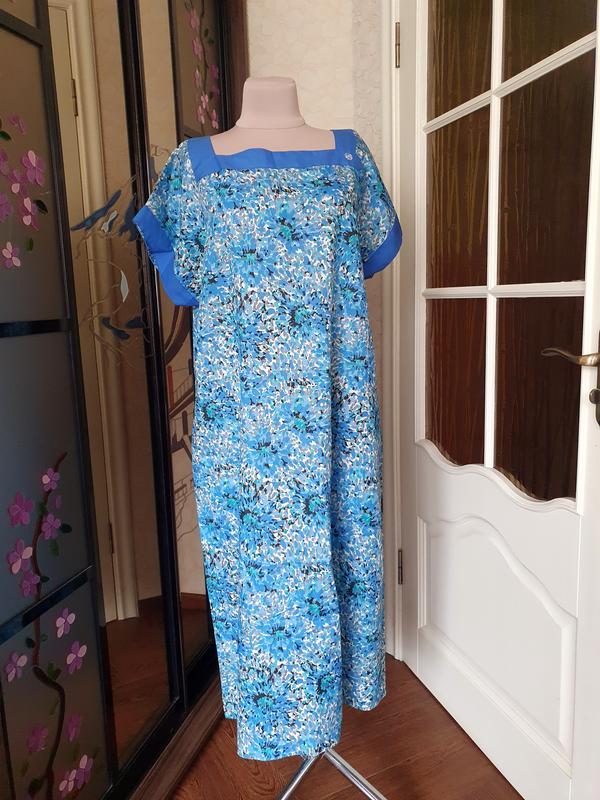 Отличное платье большого размера с карманами. Полуобхват в груди- 59см в бедрах- 62см длина-113см. Вискоза 70% и 30% полиэстр.