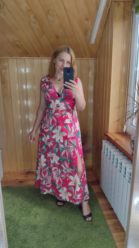Нові сукенки міді довжини у квітковий принт з ефектним розрізом Колір малиновий Тканина щільна Якість 💣💣💣 Розмір Л ПОГ 53 ПОТ 43 ПОБ 60 довжина 130 Розмір М 📍ПОГ 48 📍ПОТ 41 📍ПОБ 59 📍довжина 130 Про деталі дивись у відеоогляді 🎥