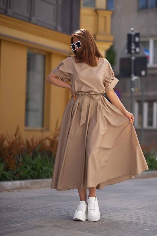 Сукня арт. dm. 2555 Цвет: беж, малина, черный Размер: 42-46, 48-52 Ткань: коттон Турция. Натуральная летняя ткань, Не просвечивается. Талия на резинке, имеет пояс. Хорошее качество.