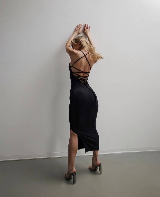 450 грн🖤платье с красивой спиной черная миди длинное с разрезом