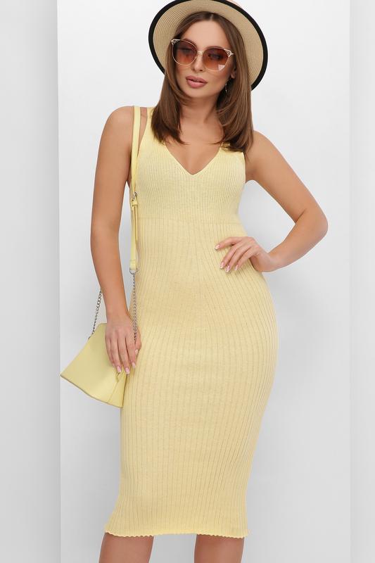 Вязаное женское платье. Размеры 42-46. Состав - 50% хлопок, 50% акрил. Рост модели на фото 168 см. Летнее вязаное платье резинка, V - образный вырез. Под разные виды обуви платье смотрится как повседневным так и романтичным.