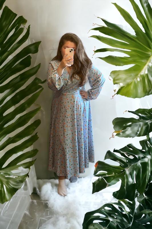 Новое платье от VOVK. Размер XXL-XXXL Цвет: нежно голубой в цветочки. Длинный рукавчик. Платье идеально садится на любую фигуру!
