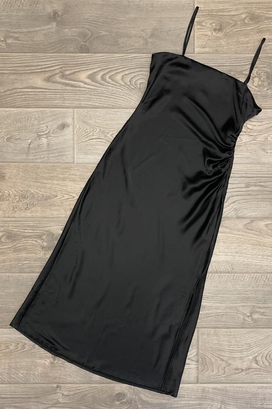 Платье Zara р. L/40/12. Платье на тонких бретелях, сбоку на молнии, драпировка сбоку, разрез на ноге (44 см). Состав: 97% полиэстер, 3% эластан. ПОГ 47 см ПОТ 39 см ПОБ 60 см