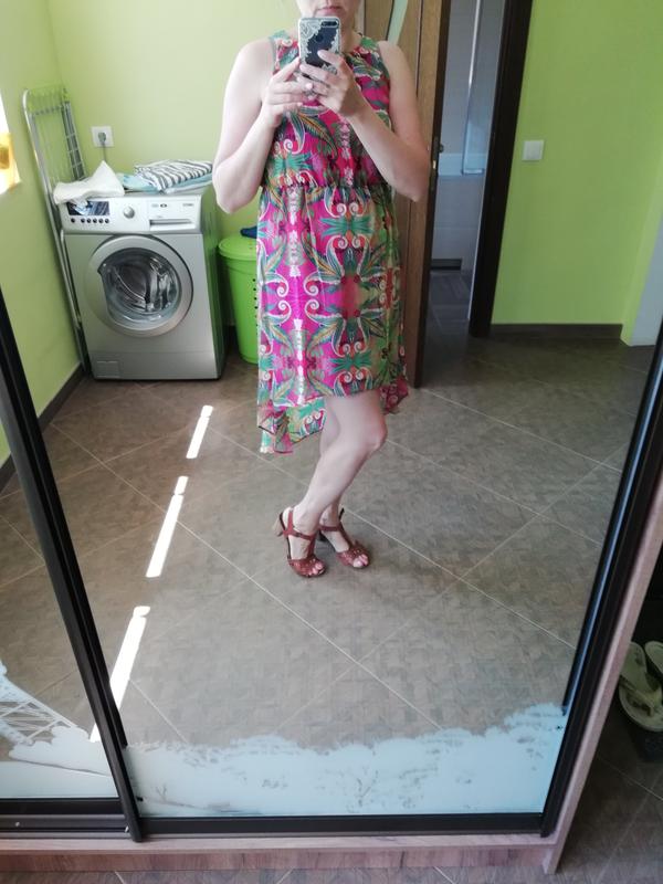 Модне плаття вільного крою, зад трохи довший, цікавий колір. Пояс на резинці
