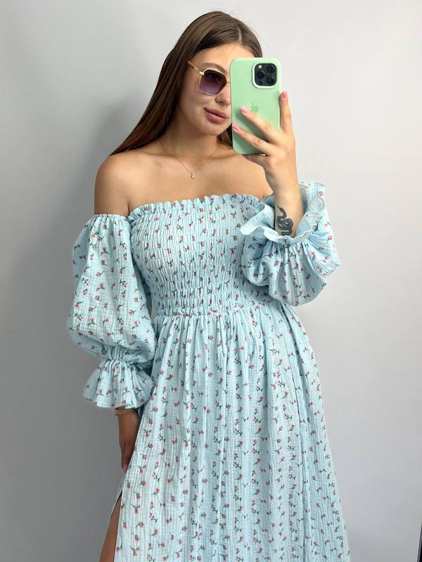 Трендовое муслиновое платье, хит сезона, стильное легкое платье миди, платье принт с объем...