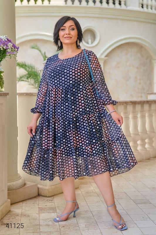 Шифоновое платье с длинным рукавом. Рукава на резинке. Ориентировочные замеры по готовому изделию: 52 (ОГ 106 ОБ 108 длина 107 длина рукава 54), 54 (ОГ 110 ОБ 112 длина 107 длина рукава 54), 56 (ОГ 114 ОБ 116 длина 107 длина рукава 54), 58 (ОГ 118 ОБ 120 длина 108 длина рукава 54)