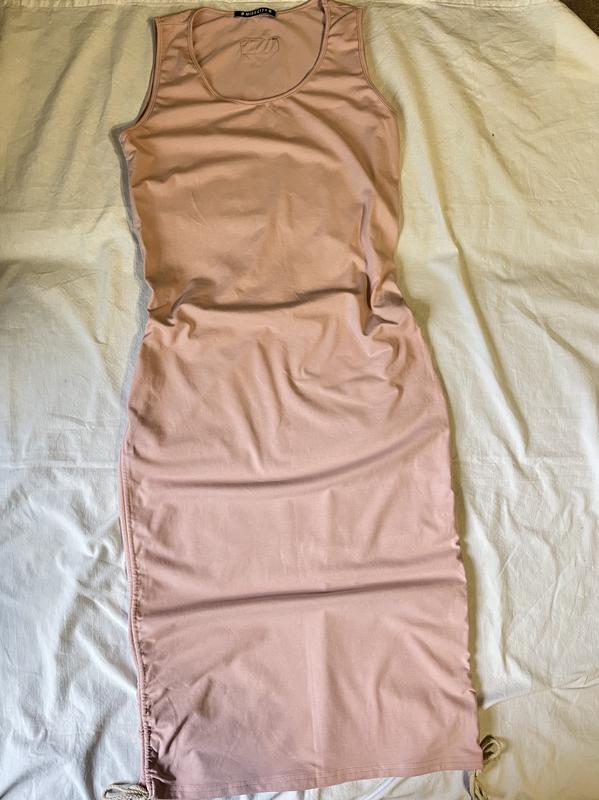 Трендовое платье-миди в пудровом цвете Идет со стяжками по бокам, длина регулируется Шикарно садится по фигуре Материал приятный к телу и качественный, не просвечивает Размер м, очень хорошо тянется Состояние Идеал Пог 43-53 Длина максимум 115