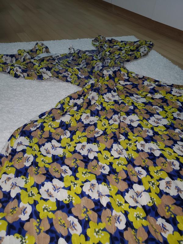 Платячко з бірочкою, розмір 16( л-хл). З трендовим прямокутним розрізом на грудях і об'ємними рукавами. Гарний квітковий принт