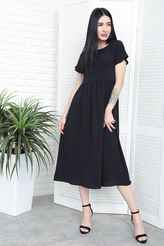 Повседневное и чрезвычайно комфортное платье🔥 💜Летнее платье миди свободного кроя "Ordinary"💜 Арт. 9339 + Фото батального размера😍 🌈Цвета: черный, фрезовый, голубой, лавандовый, хаки 🧷Размер: 42-44, 46-48, 50-52🔥 📐Замеры: Длина по спинке: 112-114 см Длина рукава (от горловины): 21-22 см 🪡Материал: Креп-жатка Цена 550 грн 🔥🔥🔥 ✔️ Модная женская одежда по лучшим ценам!