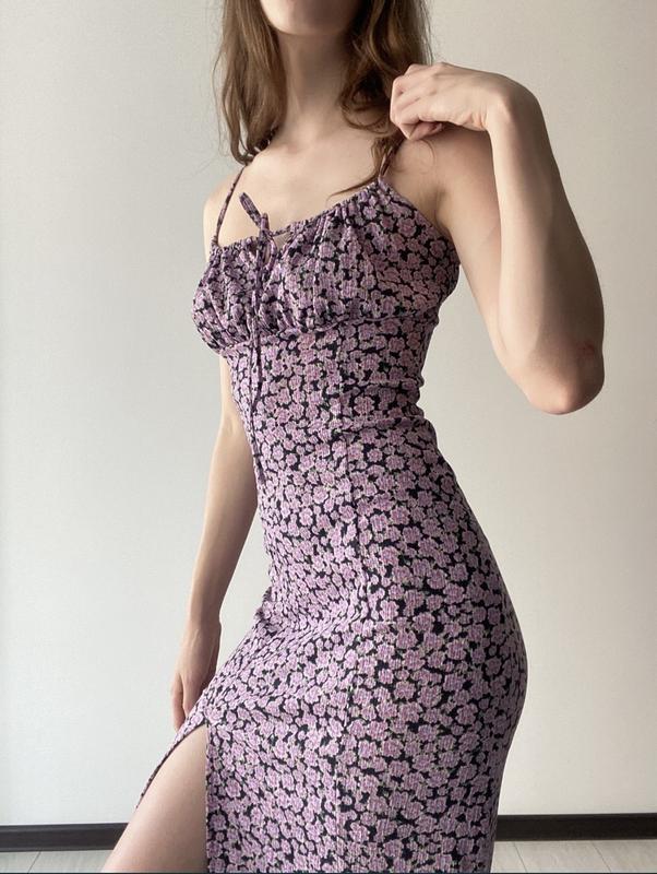 Стильное платье-миди с разрезом в цветочный принт bershka