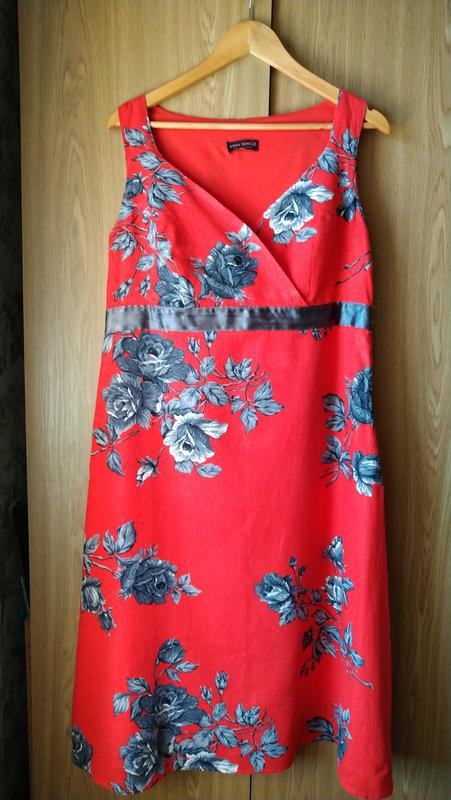 Льняное яркое платье на тонкой хлопковой подкладке, сбоку застежка. Длина 114см ПОГ-52 (под грудью 46см) ПОТ - 52 (платье трапеция, поэтому примерно, где талия) ПОБ-свободная (60см, если замерять)