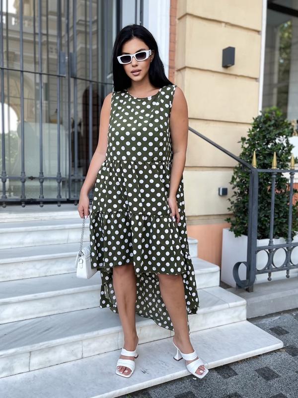 ✨Розмір:42-44,46-48,50-52;54-56 ✨Тканина:супер софт турецький ✨Колір:принт горошок Заміри: Розмір 42-44 ог-100,от-110,довжина перед-85,зад-130 Розмір 46-48 ог-104,от-114,довжина перед-90,зад-135 Розмір 50-52 ог-116,от-124,довжина перед-90,зад-145 Розмір 54-56 ог-120,от-128,довжина-перед-95,зад-150 дгн