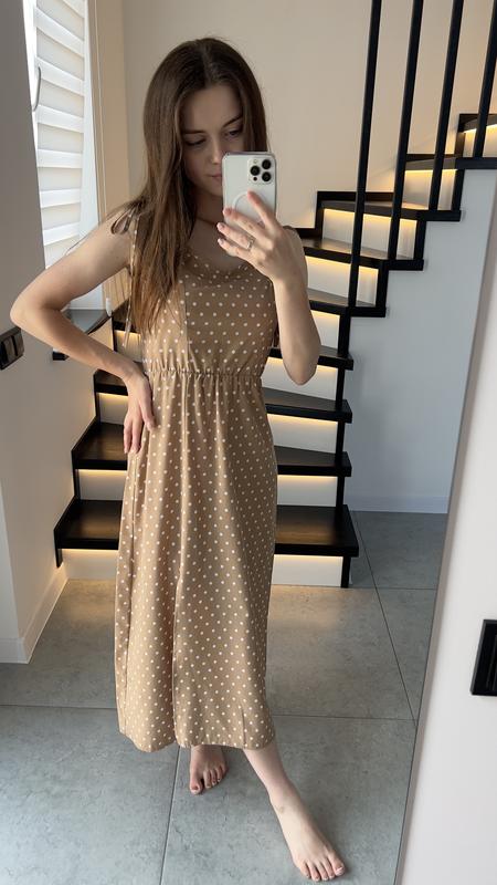 Продаю сукню в горошок Платье размера XS-S Цвет - бежевый Стан - идеальный Сверху регулируется на шнурочках