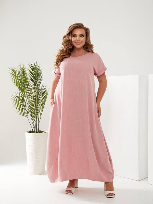Льняное платье в стиле бохо розовый р. 50-56