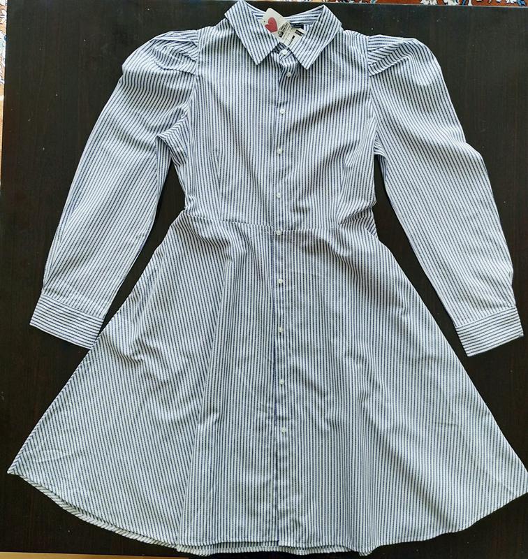 Платье с очень оригинальными рукавами, выполненные в виде фонариков, красивый воротник, есть карманы сукня на гудзиках Длина платья 98 см Полуобхват груди 93 см Полуобхват талии 78 см Состав: 100% котон