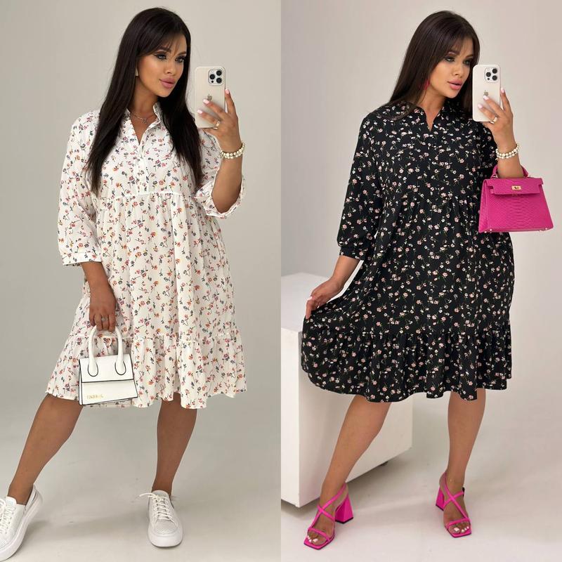 Платье Арт 2754 Тканина софт принт Цвет белый, черный Размер 48-50, 52-54, 56-58 Цена 615 грн Платье свободного кроя, длинный рукав, на груди защип, с карманами.