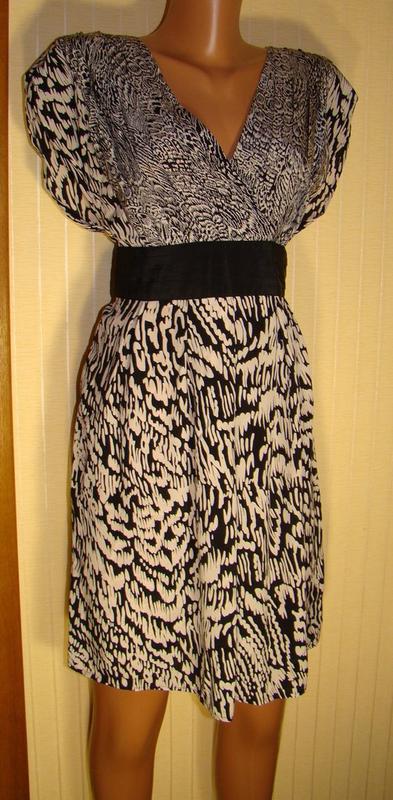 Платье warehouse Платье летнее шёлковое Warehouse. Легкое летнее платье. Отрезное по талии. Рукав кимоно. Спереди по груди и сзади по спине заложены декоративные складки. По спине застежка на контрастной молнии длиной 46 см. По юбке спереди и сзади небольшие складки. Размер 46 (М). Ширина по талии 37,5 см. Ширина плеча 14,5 см. Длина от плеча до талии 41 см. Длина юбки от талии 54 см. Цена 650 грн.