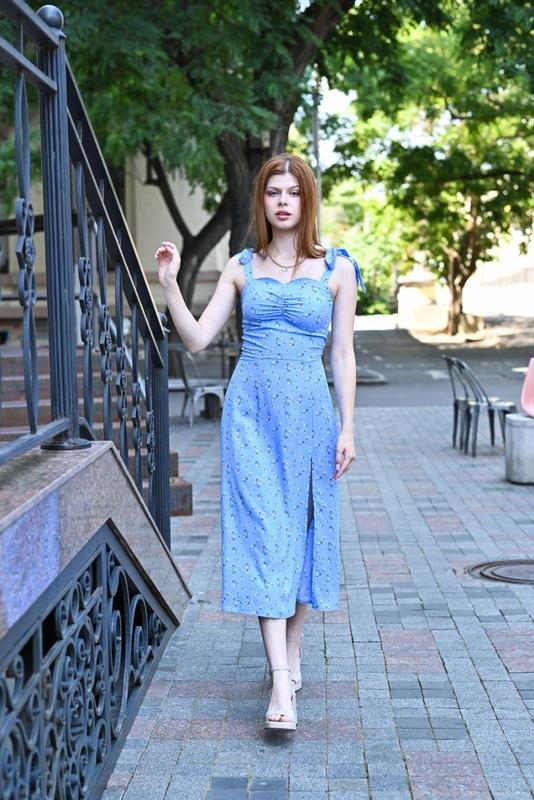 Летний сарафан на завязках голубой р. 42-48