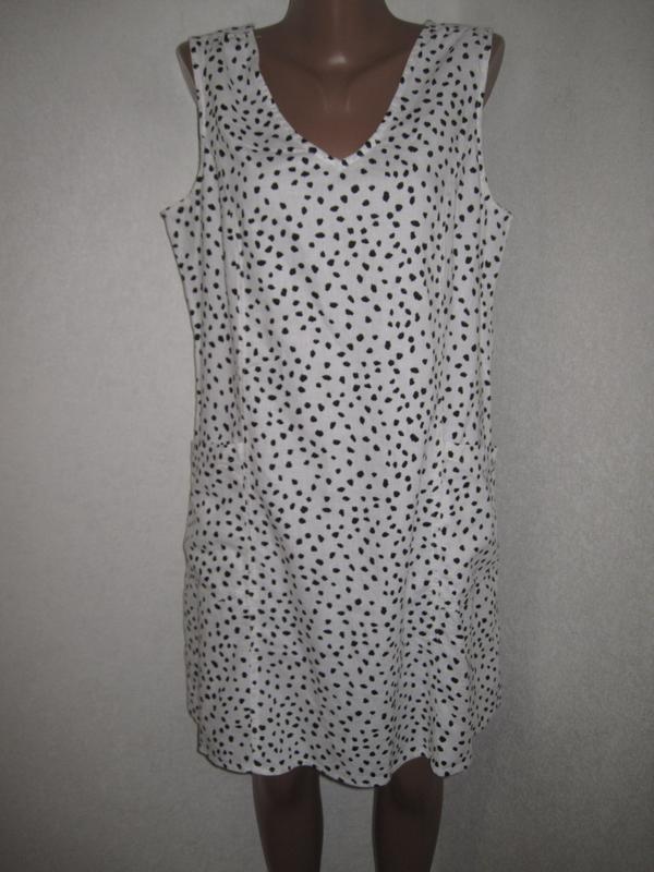 Льняное платье F&F р-р14,55%лен, 45%вискоза. ткань не плотная, ПОГ54, ПОТ51, ПОБ55, впереди карманы, длина впереди 90, по спине 100. состояние хорошее. 140грн