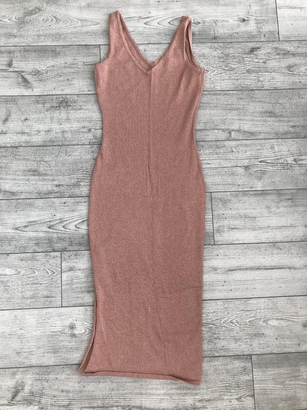 Стильное платье-миди с разрезом; эффектно подчеркивает фигуру пудровое с люрексом Заглянул длин 95 см