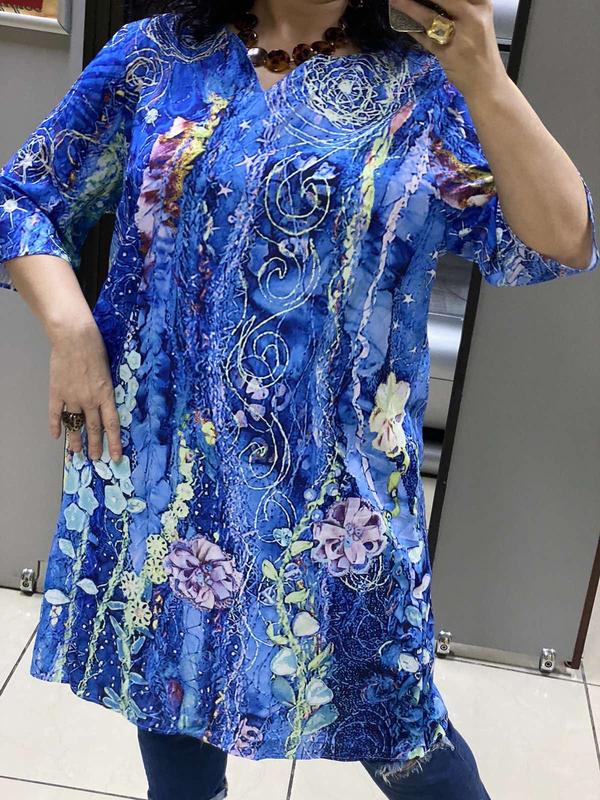 Невесомое платье туничка . Расцветка просто супер . Длина 100 грудь полуобьем 65 бедра полуобьем 68 .Ткань полиэстер .