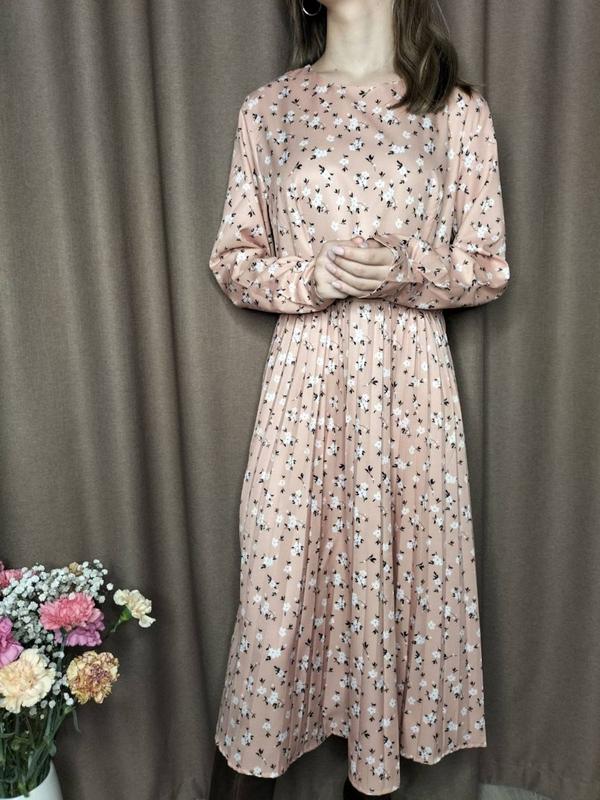 Платье миди отрезное по линии талии по спинке молния вырез круглый рукав длинный на манже...