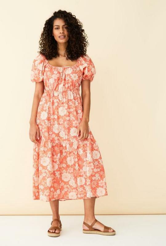 Прекрасное платье миди из натуральной ткани в идеальном состоянии Замеры полуобхват груди 52 полу охват талии 39, тянется к 49 на резинке полуобхват бедер 63 длина 134
