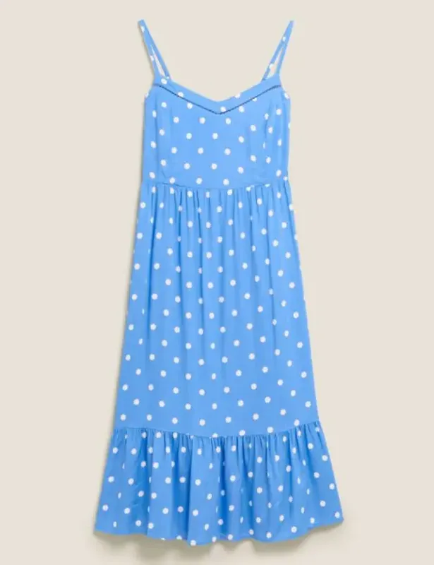 Мила натуральна ярусна сукня–міді в горошок з кишенями\сарафан з воланом m&s