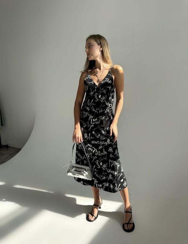 Сукня арт. ryab. 546-принт Тканина: софт Размер: 42-46 универсальный Цвет: черный с принтом Легкость, красота, нежность и женственность — все это вы почувствуете надев это платье. Универсальная модель на любое время года, идеально сочетается как с рубашкой, пиджаком, так и с любимой косухой