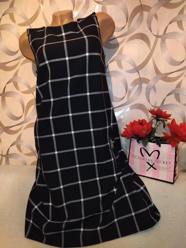 Платье-сарафан в клетку от Esprit,размер указан 38(подойдет на 46-48).Цвет черный.Карманы идут на молниях.Ткань тянется.Без нюансов.Замеры предоставлю по запросу